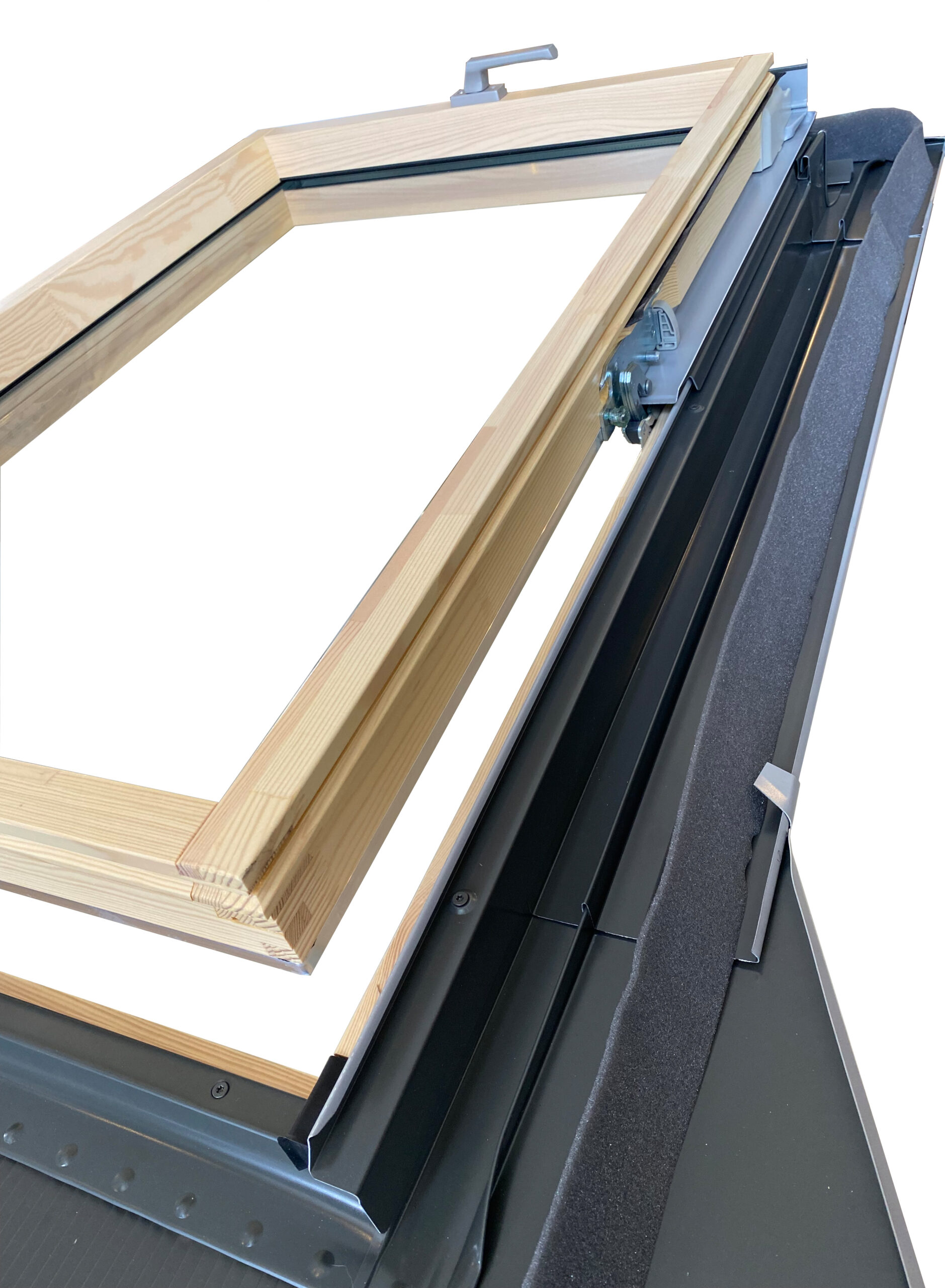 Kronmat Erw çatı pencereleri iskandinav fırınlanmış çam ağacından imal edilmiştir. Oda içinde kalan ahşap kısımlar, yağmur veya kar ile temas etmez. Çünkü üst yüzeyi antrasit gri renkte RAL (7022), electro statik fırında boyanmış sıcak ve soğuk havaların direncine dayanıklı alüminyum eteklikler ile kaplıdır.