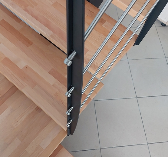 Basamaklar 1. sınıf masif kayın ağacından üretilmekte olup standart olarak 40 mm kalınlıktadır. Yüzeyler doğal dokuyu ön plana çıkaran şeffaf koruyucu cila ile kaplanmıştır. Talebe bağlı olarak basamak kalınlığı 60 mm veya 80 mm seçenekleriyle üretilebilmektedir.